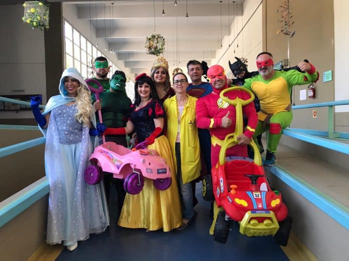 O final de semana foi muito especial para as crianças internadas no Hospital Infantil Joana de Gusmão, em Florianópolis, com a visita da “Liga da Justiça”, grupo de voluntários de uma empresa de segurança vestidos de super-heróis e princesas. Eles levaram alegria por vários setores e entregaram, de mão em mão, 130 kits de presentes, adquiridos a partir da doação de outros colaboradores, integrantes do grupo, amigos e ajuda da própria ORCALI Segurança e Serviços. Um dos momentos mais emocionantes foi quando fizeram a entrega de dois carrinhos, que serão utilizados somente dentro do centro cirúrgico, para levar as crianças até as salas cirúrgicas. Os carrinhos servirão para deixar esse momento mais lúdico – já que atualmente elas são levadas em macas – e ajudarão no enfrentamento dessa etapa do tratamento.