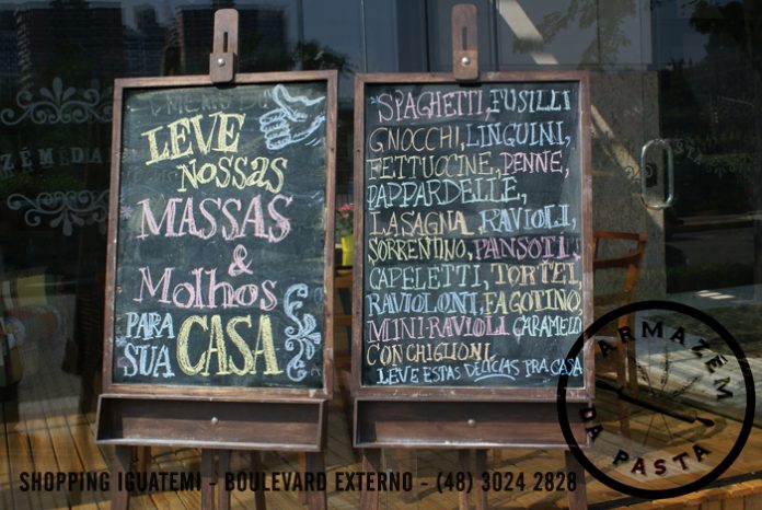 Baseado na culinária italiana contemporânea, o Armazém da Pasta é o mais novo espaço gastronômico do Shopping Iguatemi Florianópolis. Localizado no boulevard externo, ao lado do Taikô, conta com uma grande variedade de pastas filadas e recheadas e molhos congelados, com diferentes e exclusivos sabores, cores e formas. São produtos artesanais, saudáveis e fáceis de preparar. O Armazém da Pasta também funcionará como bistrô, atendendo no almoço e jantar, dentro do horário de funcionamento do Shopping. O espaço também abrigará um charmoso café, com tortas, doces, salgados e cafés selecionados. O projeto arquitetônico da loja reúne elementos que remetem a antigos armazéns, mesclados com materiais e tecnologias atuais. A idéia foi criar um ambiente aconchegante, informal, onde o “antigo” e o “novo” se harmonizem, tornando o ambiente perfeito para um happy hour.