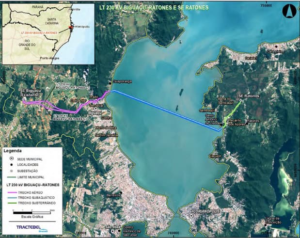 A Linha de Transmissão 230 kV Biguaçu – Ratones C1 e C2 interligará os municípios de Biguaçu e Florianópolis, com extensão total aproximada de 28 km. Começa na Subestação Biguaçu, seguindo em direção leste até a região costeira, passa pela Praia de Baixo e cruza a Baía Norte em direção à Ilha de Santa Catarina, alcançando a Praia Comprida. A partir do bairro Santo Antônio de Lisboa, a Linha de Transmissão (LT) entra na ilha, de forma subterrânea, seguindo até a área a ser implantada a Subestação Ratones, no bairro de mesmo nome. Desta forma, a Linha terá um trecho aéreo (em Biguaçu) com dois circuitos C1 e C2, um trecho subaquático (na Baía Norte) e um trecho subterrâneo (em Florianópolis).