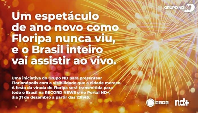 No dia 31 de dezembro, a cidade de Florianópolis se prepara para oferecer ao Brasil um Réveillon inesquecível, repleto de luzes, arte e tecnologia. A celebração terá uma transmissão a altura, de forma inédita ao vivo para todo o país, através da Record News Nacional e do portal ND+, proporcionando a oportunidade para que todos compartilhem a magia da virada do ano na capital catarinense. Esse movimento é um presente do Grupo ND para Florianópolis, entregando a transmissão da virada para todo Brasil, por meio da Record News.