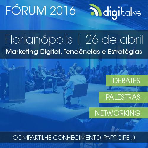 Inscrições:http://digitalks.com.br/eventos/forum-de-marketing-digital-florianopolis-2016/