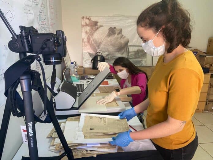 Sandra Meyer, presidenta do Instituto Meyer Filho, junto com as curadoras do programa Kamilla Nunes e Gabi Bresola conduzem o evento virtual com a participação da webdesigner Natali González e também da equipe responsável pelo tratamento arquivístico do acervo, comandado pela historiadora Elisiana Trilha Castro, a museóloga Anna Julia Borges Serafim e a arquivista Michelle Witkowski.
