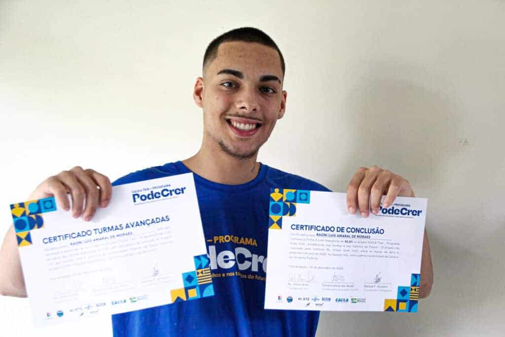 O professor de jogos digitais e robótica, Lucas Ribeiro, se diz privilegiado por poder ensinar programação aos jovens do Pode Crer. Ele, que atuou no Laboratório de Inovação, no Pode Crer, por meio de uma parceria entre IVG e FIESC, conta que “o primeiro contato com a programação é um pouco complexo, mas que, à medida que vai se aprofundando no assunto, vamos vendo que isso é um mito. Basta se dedicar e praticar para ver um novo mundo cheio de possibilidades”.