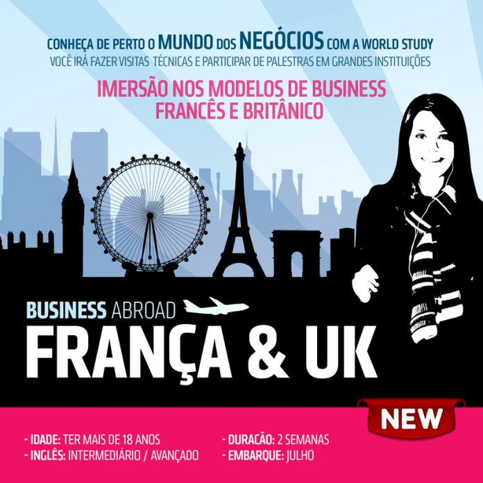 Incluir na vida acadêmica e profissional uma bagagem extra sobre a prática de mercado e diferencial competitivo das principais empresas européias. Este é o objetivo do programa de intercâmbio Business Abroad – UK and France 2011, que está sendo lançado pela World Study, Intercâmbio Cultural. Através dele, profissionais e estudantes das áreas de negócios e administração terão uma imersão nos modelos de business francês e britânico com visitas técnicas a grandes empresas e Universidades, palestras, workshops e rodas de discussão sobre assuntos em alta no meio empresarial de Paris e de Londres.