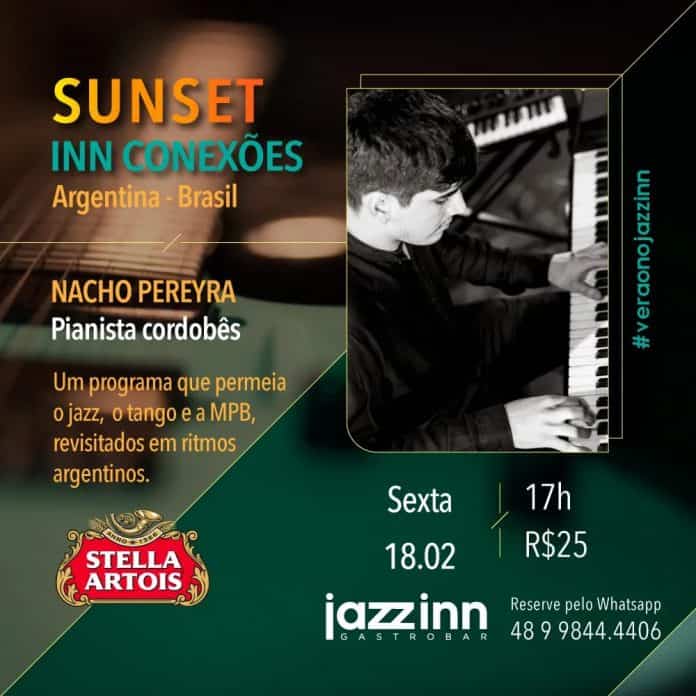 Música e comida podem ser uma combinação bastante interessante, transpondo em uma sinestesia agradável. Dessa forma, o Jazzin Gastrobar, em parceria com a Stella Artois, traz à Florianópolis uma sensação de sons e sabores com a apresentação do pianista cordovês Nacho Pereyra, na sessão “Sunset Inn Conexões” – um programa especial que revisita o jazz, o tango e a MPB em ritmo argentino. A apresentação é exclusiva do restaurante, localizado no piso L2 do Beiramar Shopping, e acontece na próxima sexta (18), às 17h. No valor de 25 reais, a reserva pode ser feita pelo Whatsapp do gastrobar.