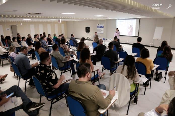 Juliana Budelon, famosa pelos doces de marca homônima, esteve no Talk do Núcleo AEMFLO Jovem desta quarta-feira (6) no AEMFLO Empresarial, em São José. Durante o encontro, que envolve um bate-papo, um espaço para perguntas e um happy hour de confraternização dos nucleados e convidados, a confeiteira contou sobre como iniciou sua indústria do zero, dentro do próprio apartamento, comportando 12 pessoas na produção.