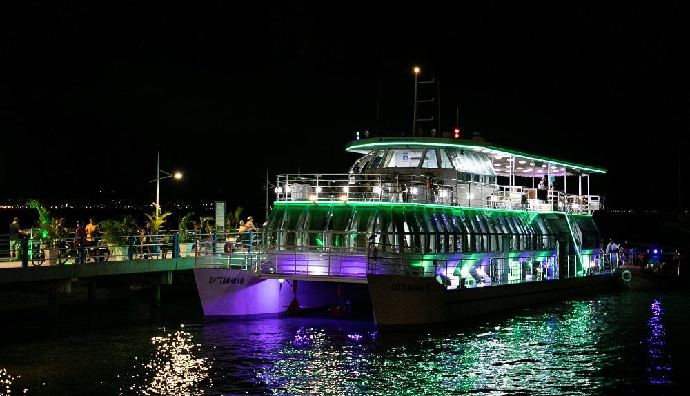 O Kattamaram III tem 35 metros de comprimento, capacidade para 250 pessoas e possui uma cozinha onde será produzido todo o cardápio de pratos que serão servidos no buffet do luxuoso restaurante climatizado.