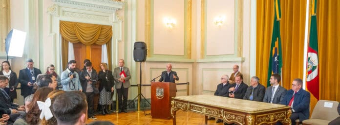 Após pouco mais de um ano na presidência do Banco Regional de Desenvolvimento do Extremo Sul (BRDE), João Paulo Kleinübing, passa agora a comandar a diretoria financeira da instituição. Em evento de transmissão de posse, realizado nesta segunda-feira (1º) no Palácio Piratini, em Porto Alegre/RS, Kleinübing destacou as conquistas neste período e a continuidade das ações pretendidas nesta nova fase no banco.