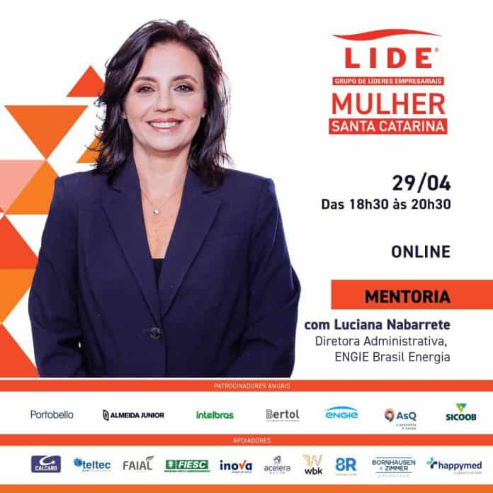 Com o objetivo de fortalecer a economia de Santa Catarina, o Grupo de Mulheres Líderes Empresariais de Santa Catarina – LIDE Mulher SC – realiza mentoria gratuita, na próxima quinta-feira (29), das 18h30 às 20h30, com Luciana Nabarrete, diretora administrativa da Engie Brasil.