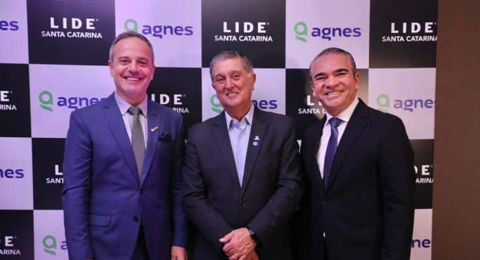 Na foto, Arnaldo Glavam (CEO do Grupo AG), Topazio Neto (Prefeito de Florianópolis) e Delton Batista (presidente do LIDE SC).