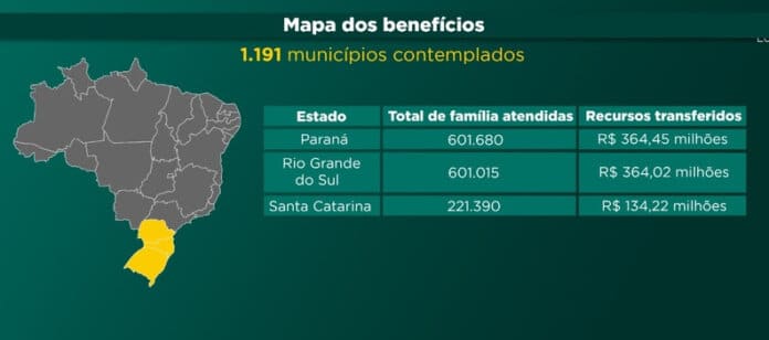 Em toda a Região Sul, houve alta no número de famílias assistidas pelo Auxílio Brasil. No total, foram incluídos mais 47.703 novos beneficiários, chegando a mais de 1,42 milhões de famílias. Mais de R$ 862,7 milhões serão repassados para o pagamento do benefício em todos os 1.191 municípios da região.
