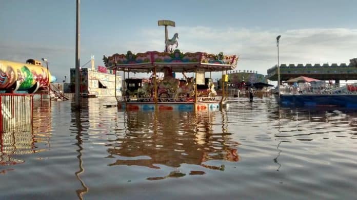 Parque Tupã também foi atingido pela subida da maré (Foto: Carmelo Cañas/DeOlhoNaIlha)