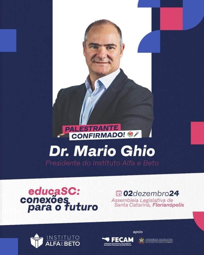 O Instituto Alfa e Beto, uma das instituições sem fins lucrativos mais respeitadas no campo da alfabetização no Brasil, com apoio da Federação de Consórcios, Associações de Municípios e Municípios de Santa Catarina (Fecam) e da Assembleia Legislativa de Santa Catarina (Alesc), realiza no próximo dia 2 de dezembro, em Florianópolis, o Seminário EducaSC: Conexões para o Futuro, debatendo e fortalecendo o compromisso com o desenvolvimento educacional no Estado. O evento acontece na Alesc, a partir das 8h30, e tem entre os destaques a palestra do professor Mario Ghio Jr., presidente do Instituto, sobre o caso de Sobral (CE), considerado internacionalmente um modelo de sucesso na educação básica.