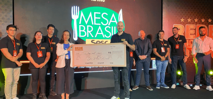 O programa Mesa Brasil, uma iniciativa do Sesc, foi contemplado na última sexta-feira com um cheque de R$ 10 mil reais durante uma imersão destinada a lojistas em Florianópolis, no hotel Majestic. O evento Rede Milionária teve o empresário e especialista em marketing de varejo Dino Gueno, autor do livro “A loja que vende”, como um dos destaques da programação, recebendo comerciantes de diferentes cidades e até de outros estados para aperfeiçoamento de técnicas de vendas no varejo. De acordo com Letícia Zago, representante do Sesc SC, o valor integral recebido neste ato simbólico pelas mãos de Leandro Cardoso, sócio do Rede Milionária, será revertido em cestas básicas. A missão do Mesa Brasil é contribuir para a segurança alimentar e nutricional de pessoas em vulnerabilidade social, mediante a distribuição de alimentos doados por parceiros, ações educativas e a promoção da solidariedade social em todo o país.