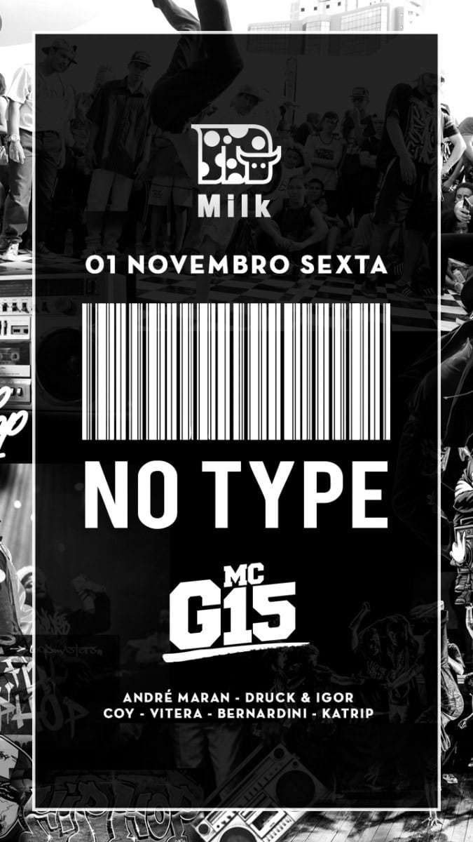 No Type apresenta MC G15 nesta sexta-feira, 1º de novembro, na Milk Club em Jurerê Internacional. Dono do sucesso “Deu Onda”, que ficou no topo da parada da música mundial da plataforma de música Spotify, o funk de G15 ficou conhecido internacionalmente. Outros hits do cantor como “Só Você”, “Eu Não Vou Embora” com Anitta e DJ Zullu, “Rebola Pro Pai” e “A Distância Tá Maltratando” também farão parte da apresentação no club premium de Jurerê. Os DJs André Maran, Druck & Igor, Coy, Vitera, Bernardini e Katrip comandam as pick ups da No Type.