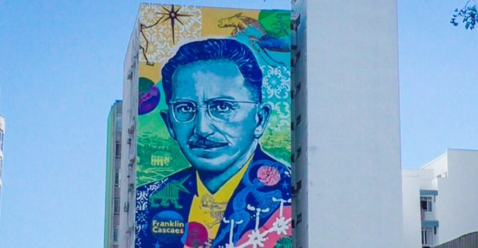 Quem passa no Centro de Florianópolis, próximo à rua Vidal Ramos, não deixa de ver o enorme painel colorido com o retrato do professor Franklin Cascaes. A obra foi pintada pelo artista manezinho Thiago Valdi no final do ano passado e já é um marco na cidade, sendo o primeiro painel artístico pintado em proporções monumentais em Florianópolis.