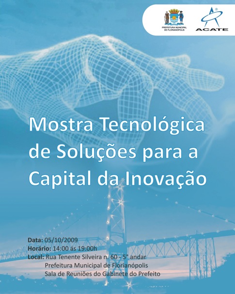 Conhecer as soluções catarinenses em sistemas e equipamentos que podem contribuir para melhorar o serviço público municipal e o atendimento ao cidadão é um dos objetivos de uma mostra que a Prefeitura de Florianópolis promove em parceria com a Associação Catarinense de Empresas de Tecnologia (ACATE). A primeira edição da Mostra de Soluções Tecnológicas para a Capital da Inovação irá reunir no dia 5 de Outubro empresas de tecnologia da Grande Florianópolis que possuem soluções que possam ser utilizadas pela administração municipal.