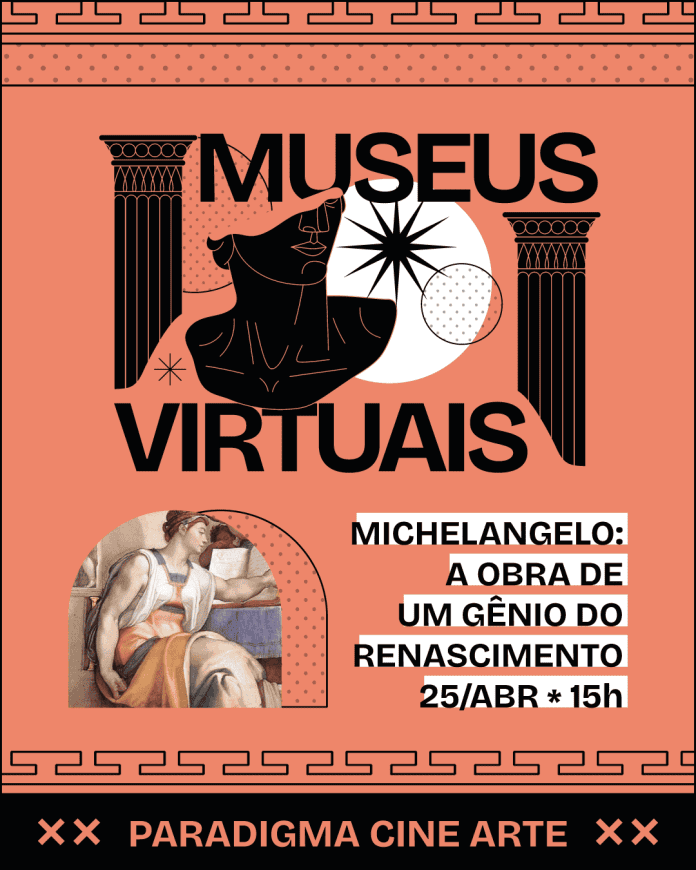 A obra de Michelangelo, um dos principais nomes da história da arte, será o foco da quarta sessão do projeto Museus Virtuais, marcada para sábado, 25 de abril, às 15h, no Paradigma Cine Arte, no Corporate Park, em Florianópolis. Com o tema Michelangelo – a obra de um gênio do Renascimento, o encontro propõe um percurso pela trajetória do artista, da juventude em Florença ao período de maior produção em Roma.