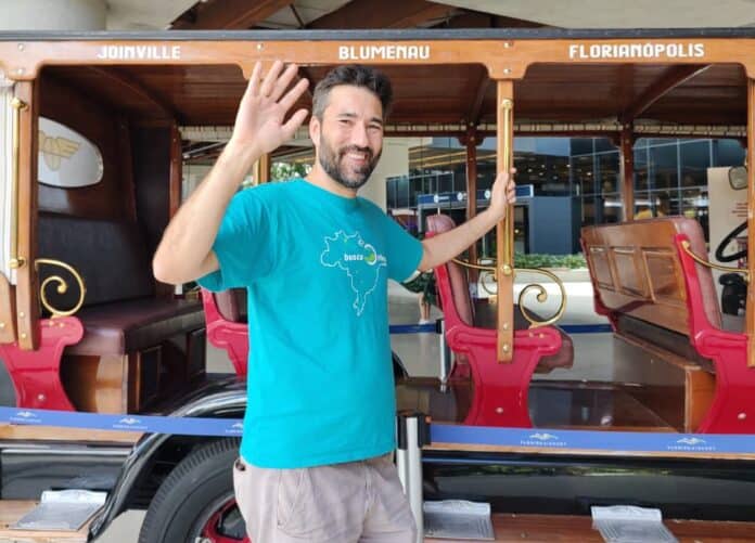 Trajeto entre Blumenau e a Ilha, que aconteceu em 1928, é homenagem da startup catarinense (que comemora 14 anos de atuação nesta semana), pioneira em comparação de preços no setor, aos 350 anos da Capital de SC.
