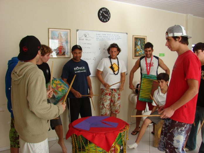 Lembrando que educadores físicos, atletas com experiência e monitores adolescentes sempre acompanham os alunos nas atividades no mar, e cada grupo tem no máximo quatro alunos com dois profissionais. Cada grupo interage com o mar por determinado tempo, enquanto os outros aguardam na areia, fazendo exercícios.