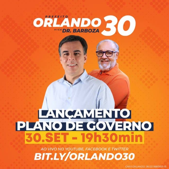 A ação será online, pelo YouTube, e também transmitida por todas as plataformas dos candidatos: bit.ly/Orlando30.