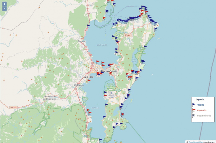 Segundo o relatório de abril, dos 87 pontos averiguados em Florianópolis, 65 apresentaram resultados positivos para balneabilidade, o que indica 74,7%. No restante do litoral, dos 144 pontos onde há coletas, 103 estão próprios para banho, o que representa 71,5%.