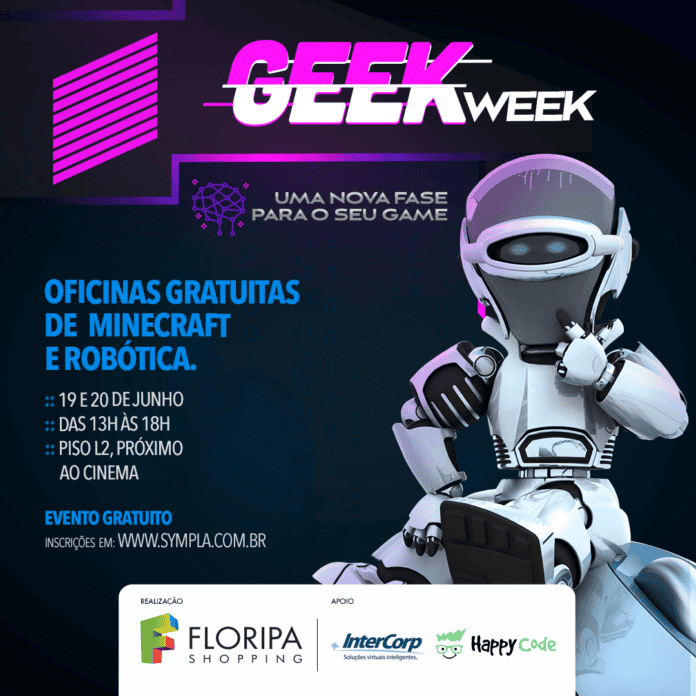 A cultura nerd vai tomar conta do Floripa Shopping nos dias 19 e 20 de junho (sábado e domingo), com oficinas gratuitas de Robótica e Minecraft (Programação de Mods). O evento será realizado em parceria com Happy Code, de hora em hora, das 13h até às 18h, em uma loja no piso L2, ao lado do cinema.
