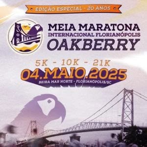 A Meia Maratona Internacional de Florianópolis OAKBERRY 2025 terá percursos de 21km, 10km e 5km, reunindo corredores de todo o país e do exterior. As inscrições se encerram amanhã (30) e podem ser feitas através deste site. Com trajeto à beira-mar, a prova é considerada uma das mais belas e desafiadoras do calendário nacional.