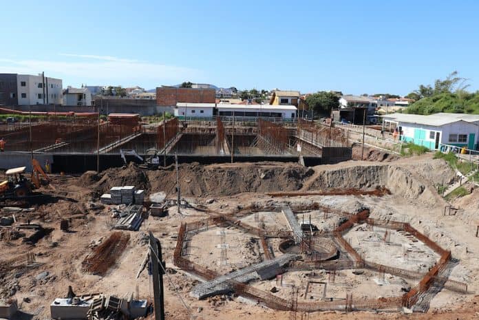 O tempo colaborou e no último sábado (08) foi realizada a segunda etapa de concretagem das paredes do Tanque de Aeração da Estação de Tratamento de Esgoto (ETE) que integra o projeto de ampliação do Sistema de Esgotamento Sanitário (SES) Ingleses-Santinho.
