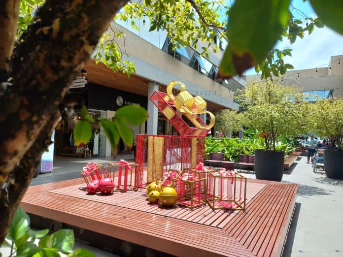 Luzes, caixas de presentes e muitas cores natalinas estão presentes na decoração especial de Natal do MULTI Open Shopping, em Florianópolis. A inauguração da decoração, que leva o nome de “Um Presente de Natal – Multi formas de celebrar”, será no dia 1º de dezembro e vai contar com a presença especial do Papai Noel.