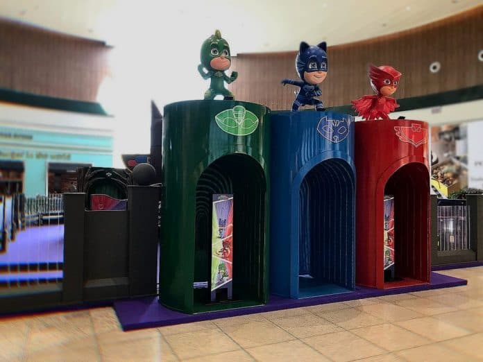 As crianças poderão embarcar no mundo dos super-heróis Menino-Gato, Lagartixo e Corujita em um circuito de atividades até o dia 12 de março