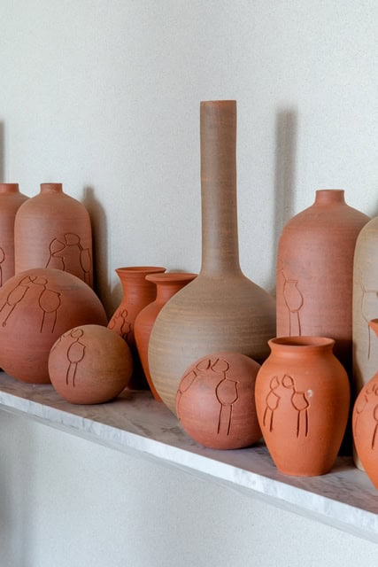 Os 40 vasos de cerâmicas que compõem o ambiente são de uma cooperativa de artesãos do Parque Nacional da Serra da Capivara, no Piauí, que abriga mais de mil sítios arqueológicos e é reconhecido pela Unesco como Patrimônio Cultural da Humanidade. A fabricação das cerâmicas obedece às normas de licença ambiental e de sustentabilidade, além de empregar cerca de 30 artesãos, antigos funcionários do parque, agora exímios ceramistas.