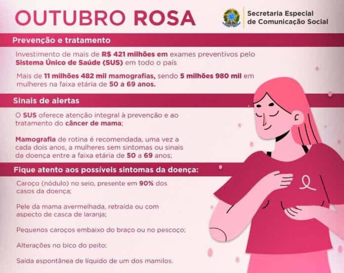 O Sistema Único de Saúde, inclusive, oferece atenção integral à prevenção e ao tratamento do câncer de mama, recomendando a mamografia de rotina em mulheres sem sintomas ou sinais da doença entre a faixa etária de 50 a 69 anos, uma vez a cada dois anos. A orientação sobre mudanças habituais nas mamas em diferentes momentos do ciclo de vida e sinais suspeitos, também são repassados às pacientes do SUS.