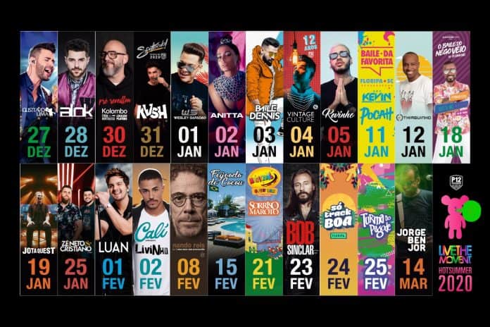 A agenda de verão do Hot Summer 2020 – Live The Moment do P12 Parador Internacional recebe os artistas mais pedidos do Brasil. Mais de 70 atrações sobem ao palco do parador entre 27 de dezembro e 14 de março. Um dos endereços mais cobiçados do Brasil, o P12 convida o público para viver o melhor verão da história em Jurerê Internacional com a sequência de grandes shows.