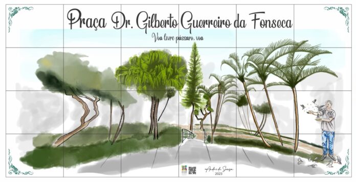 O Painel de Azulejos foi concebido a partir de uma pesquisa realizada com os Amigos da Praça Dr. Gilberto (@amigospracadrgilberto). A maioria dos pesquisados optou pelo tema Pássaros, tendo como referência a atenção do Dr. Gilberto aos pássaros que circulam pela Praça, uma vez que quando vivo, o médico alimentava diariamente os pássaros visitantes. Os familiares do Dr. Gilberto contribuíram na concepção do painel e propuseram os dizeres “Voa livre, pássaro, voa!”.