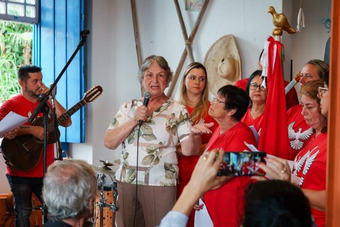 O evento teve clima de festa e emoção, embalado pelas cantorias da Festa do Divino — símbolo da religiosidade e da identidade açoriana que moldou a região desde o período colonial. As vozes dos festeiros ecoaram pelo espaço, criando uma atmosfera que conectou o presente às tradições que resistem há séculos. Os livros podem ser adquiridos, a partir do lançamento, diretamente na Casa de Cultura. Os exemplares foram doados e 100% da renda será revertida para a comunidade, através do Conselho Comunitário e Casa da Cultura, para contribuir com os projetos culturais e de restauro da praça e igreja.