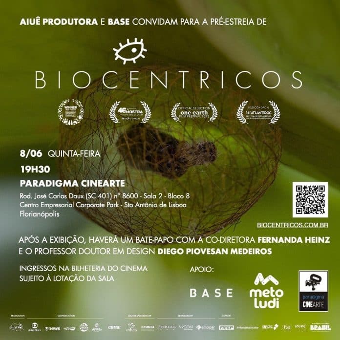 O Paradigma Cine Arte promove a exibição do documentário ‘Biocêntricos’, e um debate após a sessão com a presença da codiretora do filme, Fernanda Heinz Figueiredo e o professor doutor em design Diego Piovesan Medeiros, nesta quinta-feira, 8 de junho, às 19h30. O filme acompanha a rotina de nove pessoas e suas iniciativas baseadas na biomimética. A exibição fica disponível até o dia 14 de junho.