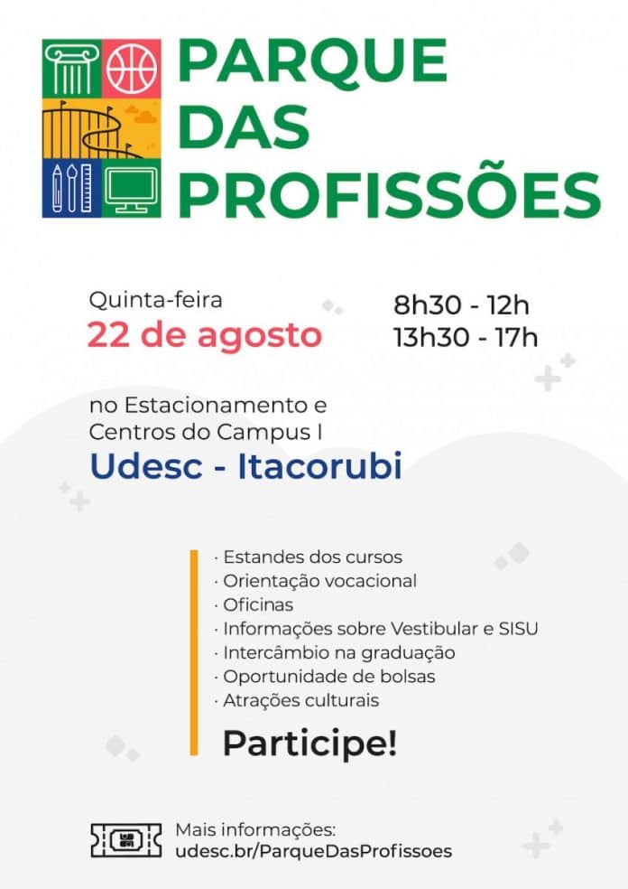 A estrutura do parque incluirá pavilhões com estandes dos cursos de graduação, além de oficinas promovidas por entidades estudantis, informações sobre as formas de ingresso na Udesc (vestibular e Sisu), intercâmbio na graduação, oportunidades de bolsas e atrações culturais.
