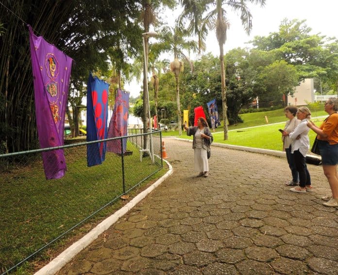 Instalação de arte têxtil transforma o Passeio Primavera em galeria a céu aberto com obras de artistas de nove países