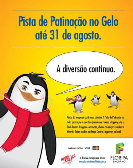 A grande novidade deste ano é o hotsite da Pista de Patinação. Acesse www.adoropatinarnofloripa.com.br, se cadastre e ganhe bônus para patinar mais, monte seu avatar de pingüim e ainda baixe wallpapers super divertidos.