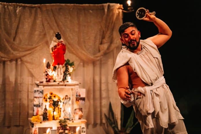 Com tradução instantânea em Libras, o espetáculo resgata a ancestralidade dos povos tradicionais de terreiro e da cultura popular brasileira, com foco na Umbanda e no Batuque, buscando desmistificar o preconceito e intolerância religiosa que essas expressões culturais sofrem constantemente. A entrada para a apresentação é gratuita, com limite para 50 espectadores e os ingressos serão distribuídos trinta minutos antes do início do espetáculo.