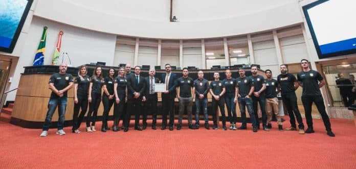 Nesta quinta-feira (11), a equipe da DEIC, através de seu diretor Delegado Daniel de Sá Fortes Régis, recebeu uma moção de aplauso na Assembleia Legislativa de Santa Catarina pelo trabalho realizado na operação policial “DEIC, presente!”. A ação, desenvolvida pela Polícia Civil através da Delegacia de Repressão aos Crimes de Informática da DEIC, cumpriu, apenas no dia 20 de abril, 7 mandados de busca e apreensão, 4 internações provisórias de adolescentes e 2 prisões preventivas. As apreensões aconteceram nas cidades de Florianópolis, São José, Biguaçu, Brusque, Blumenau, Capinzal e Campo Erê.