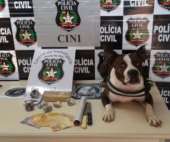 O investigado que já possuía passagens pelo mesmo crime, foi preso no local e autuado em flagrante. A busca contou com a ajuda do cão Argos.
