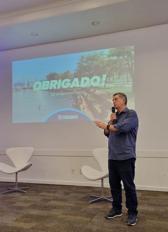 “Nosso principal objetivo é entregar uma Florianópolis melhor daqui a quatro anos”, afirmou Topázio Neto logo no início de sua apresentação, resumida em nove telas nas quais estavam as ações principais de sua gestão nas áreas de saúde, educação, ordem pública, mobilidade, sustentabilidade, causa animal, inclusão e desenvolvimento social, turismo e cultura e desenvolvimento econômico.