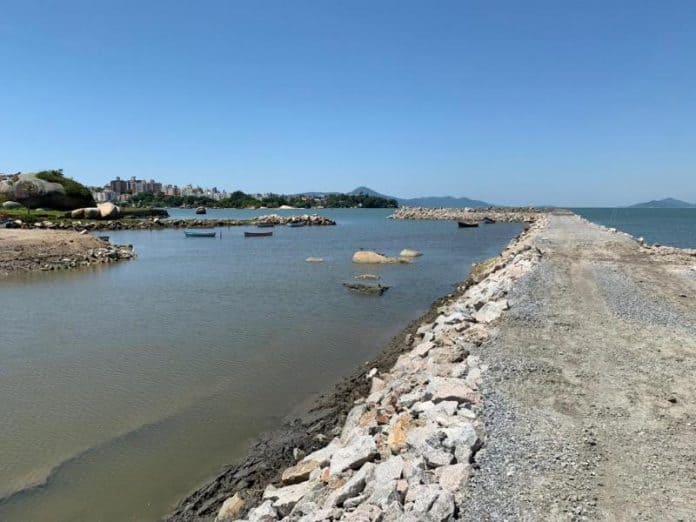 Prefeitura de Florianópolis constrói novo enrocamento de pedras em praia na divisa com São José