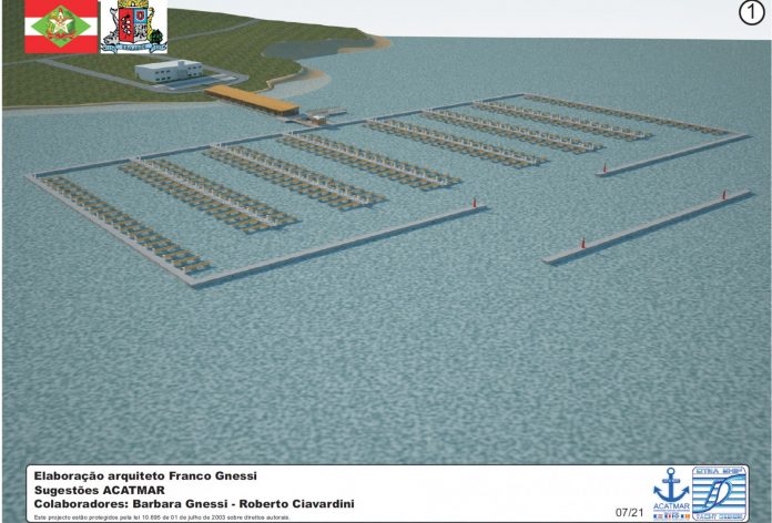 À frente do trapiche, seriam construídos dois molhes e uma marina onde se atracariam embarcações particulares e de pescadores. De acordo com Ferrari, a ideia é ter toda a estrutura em concreto flutuante, que causa menos impactos ambientais. “O interessante é que os molhes e a própria marina serviriam de abrigo para a área do trapiche e de embarque para o transporte marítimo”, destaca.