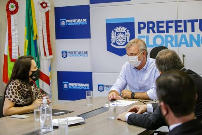 Presidente da OAB/SC em reunião com o prefeito de Florianópolis, que acolheu minuta de PL sugerido. Crédito foto: Isis Lacombe