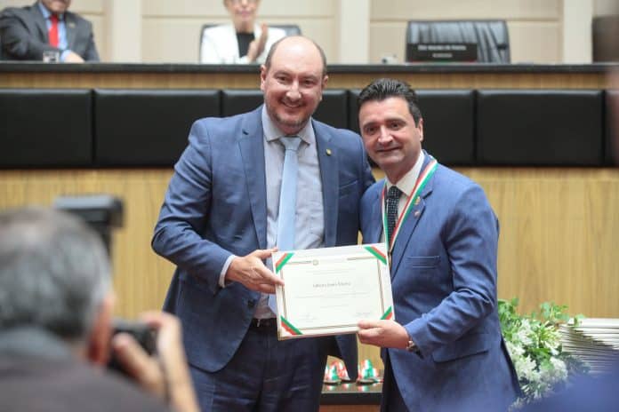A Comenda, proposta pela deputada Ana Campagnolo, foi entregue a Gilberto Teixeira pelo presidente da Alesc, Mauro De Nadal. A sessão para concessão do título a 42 personalidades e organizações catarinenses reuniu autoridades de todo o Estado, além dos homenageados e familiares.