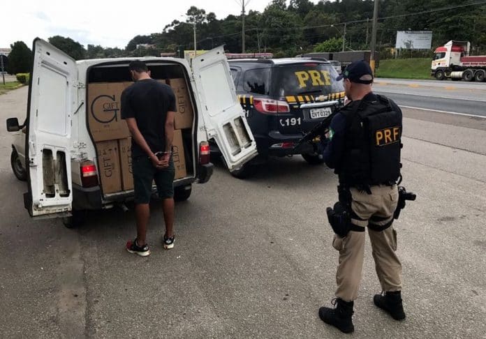 Policiais rodoviários federais detiveram nesta segunda-feira, 24, na BR 101 em Biguaçu, na Grande Florianópolis, um homem de 25 anos por contrabando de cigarros fabricados no Paraguai.