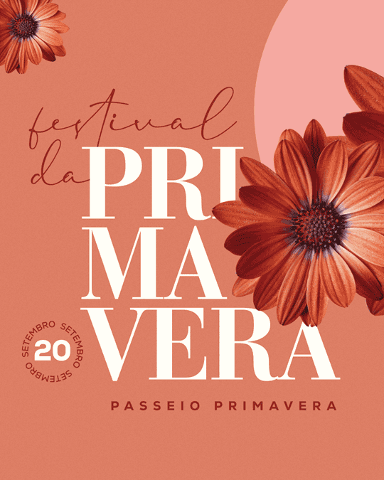 O Passeio Primavera será palco de um dia inteiro de celebração à estação mais florida do ano. No sábado, 20 de setembro, o espaço recebe o Festival de Primavera, que reunirá música, arte, oficinas e atrações culturais gratuitas em diferentes ambientes do empreendimento, localizado no bairro Saco Grande, em Florianópolis.